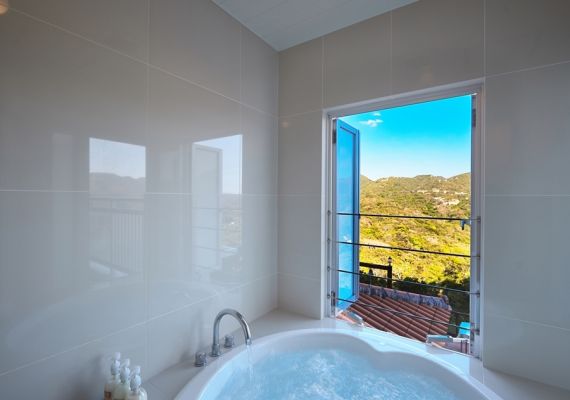 洗澡時也能從按摩浴缸看到美麗的自然景色。