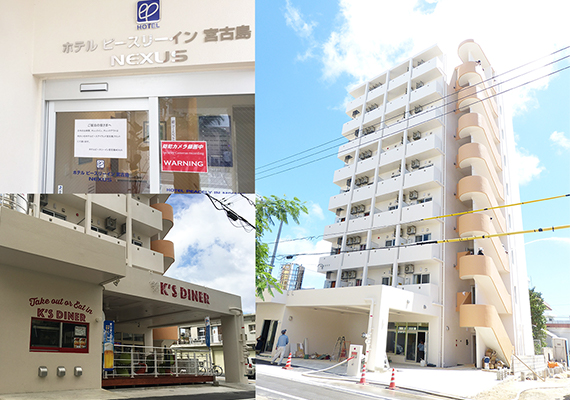 Check in and another procedures are carried out at the front on the 1st floor of Hotel Peace Island Miyakojima situated in front of Hotel Peacely Inn Miyakojima NEXUS.