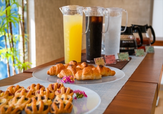 ・軽朝食無料 8:00~10:00 (デニッシュパン、クロワッサン、コーヒー等)