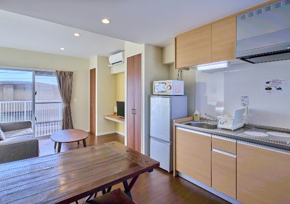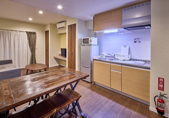 全室キッチン・全自動洗濯機・ガス衣類乾燥機付きで楽々ステイ!