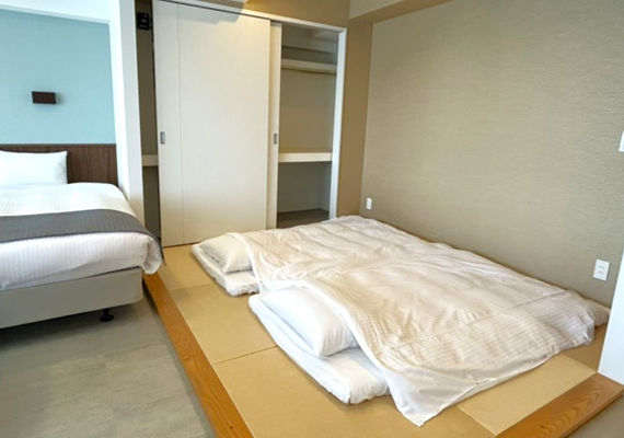 こちらの宿泊施設は、0~5歳のお子様は添寝無料です。 但し、添寝受入人数はベッド1台につき1名までとなっております。 |