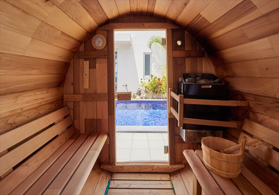 全棟にプライベートプールとバレルサウナを完備。