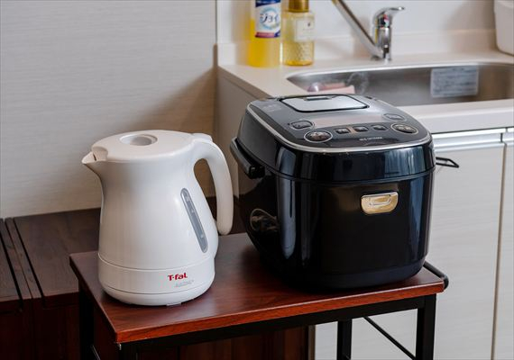| 全室共通の設備 | フリーWI‐FI テレビ 冷蔵庫 エアコン 電気ポット 洗面所 洗濯機 ユニットバス 温水洗浄機付トイレ ドライヤー 調理器具 食器類一式 炊飯器 電子レンジ |
