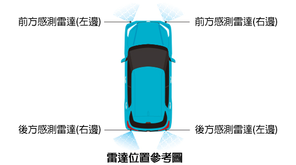 位於車子前後備有警示達雷機能。