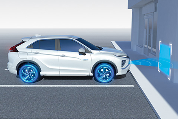 Eclipse Cross使用雷達、攝影機和電波式雷達(配備ACC的車輛)來監測與前方車輛和行人的距離和相對速度。當系統確定有碰撞風險時,系統會透過警告蜂鳴器向駕駛發出警報並顯示訊息螢幕,並自動啟動煞車控制以協助避免碰撞或減輕碰撞損壞。
